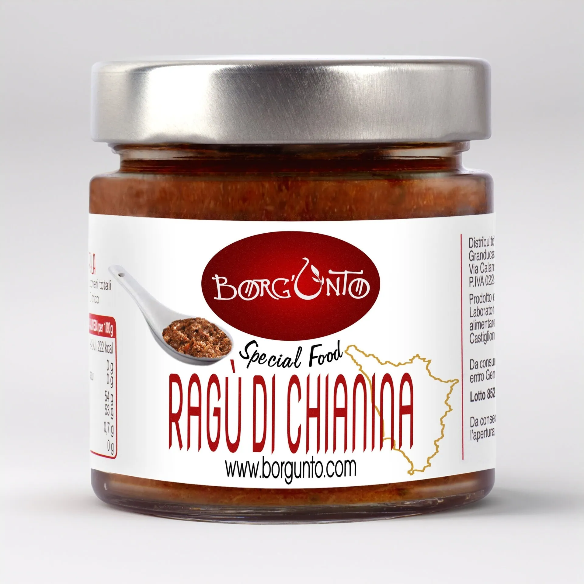 Der Ragù di Chianina DOP ist eine Ikone der toskanischen Küche, hergestellt von Borgunto in Arezzo aus zertifiziertem Fleisch der renommierten Rinderrasse Chianina DOP, die im Val di Chiana aufgezogen wird. Langsam bei sanfter Hitze gekocht, ohne Konservierungsstoffe oder Zusatzstoffe, entfaltet diese handwerklich hergestellte Sauce einen reichen, authentischen Geschmack, der tief mit dem Territorium verwurzelt ist.
