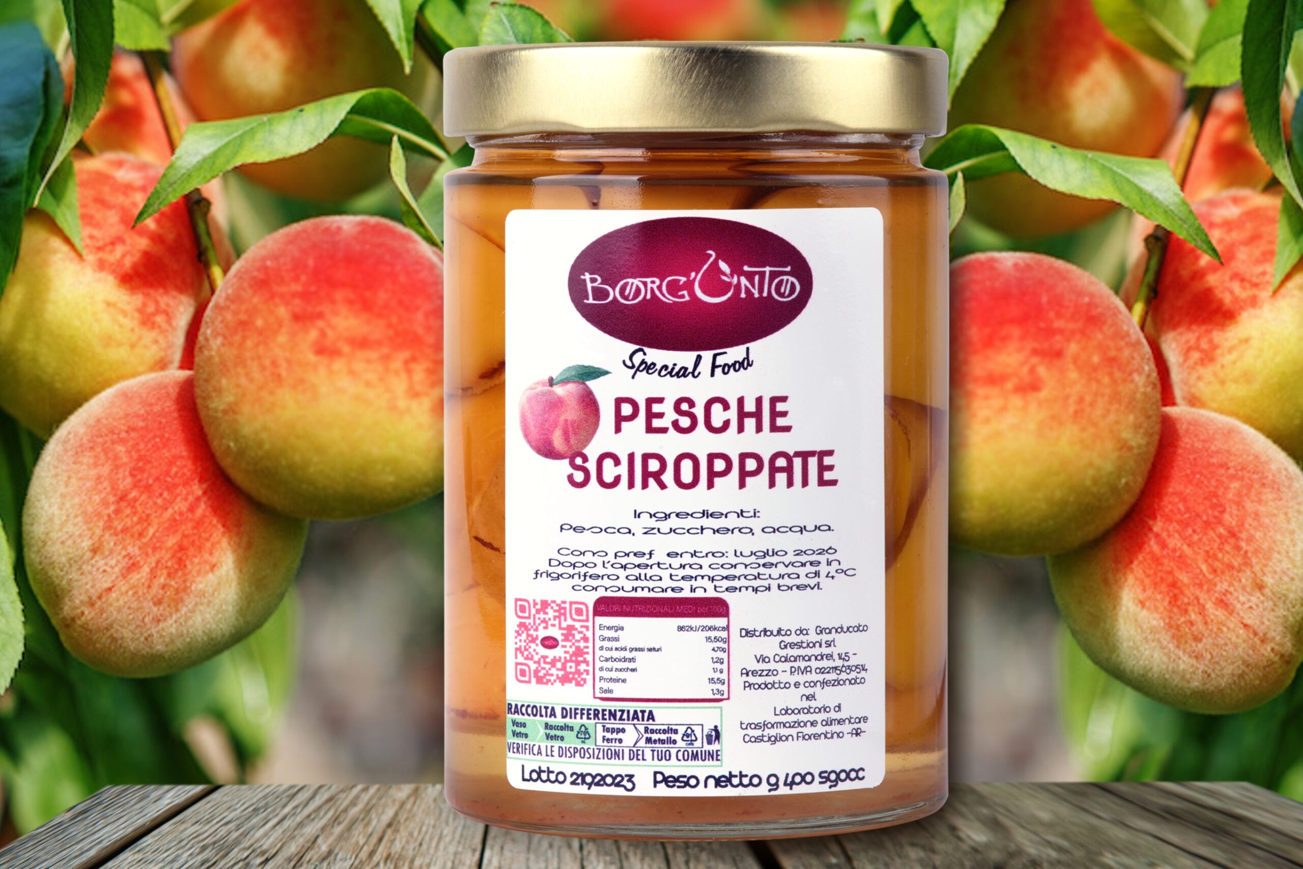 De hantverksmässiga sirapade persikorna från Borgunto tillverkas i hjärtat av Toscana, i Arezzo, enligt ett enkelt och äkta recept: endast persikor av hög kvalitet, socker och vatten. Utan konserveringsmedel, utan tillsatser, utan kompromisser. Resultatet är en toskansk sirapad frukt med ren smak, idealisk för den som söker naturlig sötma och hantverkskvalitet.